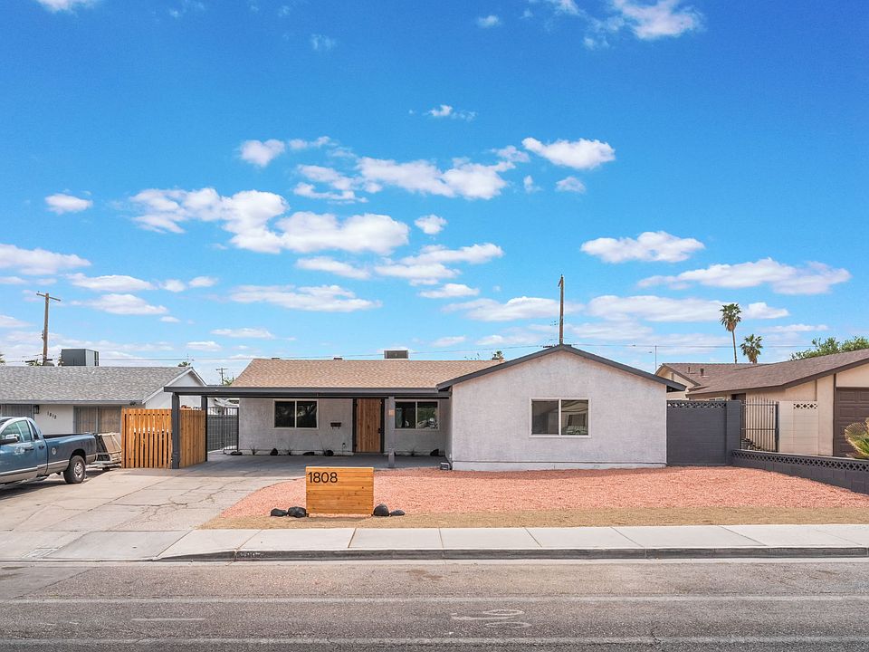 First, thank you for taking the time to take a look at this lovely home. This home boast 4 generous sized bedrooms and 2 full bathrooms. Conveniently located next to grocery stores, retail, and freeway access. Upon arriving to the home, you have a welcoming landscaped front yard and carport. Step inside to an open concept that seamlessly connects to the backyard pool. The pool was recently replastered, and a new pool pump was installed. Great backyard built for entertaining and fun in the sun while enjoying the pool. The flooring is vinyl wood and porcelain tile for easy maintenance. The cabinets are brand new white shaker cabinets with a complimentary white quartz countertop and white picket backsplash. The home has central ac. The master bedroom is very spacious and has its own walk-in closet with shelving and clothing racks for a couple. The home comes with a stainless-steel stove and dishwasher, garbage disposal, washer and dryer. Modern paint colors show well on the exterior while inside its bright and white giving it a clean look. We used black plumbing, mirrors and light fixtures to give contrast. New white shaker vanities. Landscaped with rocks and low maintenance plants. We are pet friendly. Pool maintenance is $150 per month. Call today with any questions or to schedule an appointment