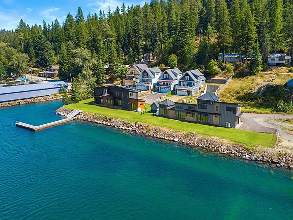 Custom built, contemporary NEW construction waterfront home located in beautiful Garfield Bay on North Idaho's famous Lake Pend Oreille! Incredible .35 acre lot with 140' of level low bank, private shoreline with mesmerizing, panoramic mountain views of the Green Monarch Mtn Range! Garfield Bay is coveted for its deep water, making the bay perfect for year-round lake access and fishing. This home is perched right on the water's edge! Enjoy the simplicity of owning a brand new, high quality, ultra efficient, low maintenance luxury home. The home has been designed with intentional living in mind, taking advantage of a conditioned square footage of 1424 sqft with an additional 320 sqft of garage space and 270 sqft of covered outdoor space. Designed with efficiency and simplicity in mind, the home offers: a galley kitchen with professional gas range, a flex space, covered outdoor veranda, 2 bedrooms, each with its own ensuite bathroom and a loft that can be used as an office, bunk room or studio. Each bathroom has a tiled walk-in shower and upgraded fixtures. You will appreciate heated floors in the primary bathroom. The eco-friendly bamboo floor is both durable and inviting. The home’s custom cabinetry was built with beautiful Sapele hardwood by award-winning furniture builder, Gonczar’s Waiawa Woods. This home was built in accordance with structural and civil engineers’ specifications. The hybrid HVAC system will keep your energy costs low, while you enjoy forced air heating and air conditioning coupled with ductless units. The Taylor Metal roof has a Kynar finish with a transferable 50 -year warranty. Low-maintenance siding and cedar facia are aesthetically pleasing and the highest quality siding products on the market. Euroline windows, renowned for their high quality and energy efficiency, are installed throughout with Smart Slide glass doors. A level yard leads to your private deep-water frontage just 40’ from your patio and an approved new dock permit is already in place! The finished oversized 1 car garage is wired for an electric vehicle charging station and a generator. There is ample off-street parking for a boat trailer, RV and guests. From this home, you can walk to the State Park and boat launch, the Captn’s Table restaurant/bar and Odie’s - the local general store and ice cream shop. This is an amazing recreational area with 1000's of acres of USFS land nearby so you can enjoy mountain biking and hiking trails right outside your door! Garfield Bay is a 25 minute drive to downtown Sandpoint, a 45 -minute drive to Schweitzer Mountain Ski Resort and a 90- minute drive to Spokane International Airport. Also for Sale is the neighboring, new construction home located at 1770 Garfield Bay Rd. Don't miss out on this incredible, rare opportunity!