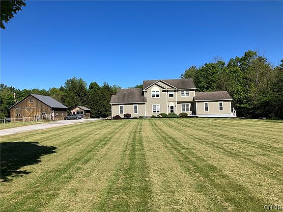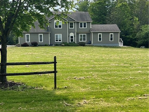A Colonial home with 5 bedrooms 3 baths, central air, and 2 car attached garage on 10 ac+/- lot. This property comes with a 4 stall horse barn and 4 fenced paddocks with run-in sheds. Featuring 9' ceilings, a first floor and second floor ensuites oak staircase, granite countertops, Brazilian cherry cabinets, Oak and ceramic flooring, Butler pantry, formal dining room, Livingroom, family room, first floor laundry. First floor office makes a nice at home work space. First floor ensuite has a shower and jetted tub. The second floor ensuite has a tub shower unit and a walk-in shower. Outside is a split level trex deck, raised bluestone patio with hot tub and a large in ground salt water pool. This home also has a full basement that could be made into more living space. Located over a mile from Colgate University, and just outside the Village of Hamilton.