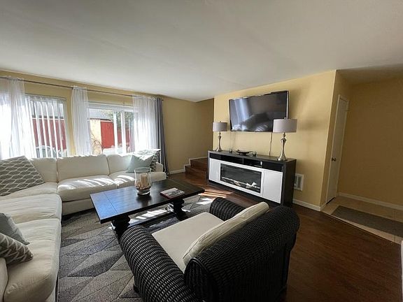 This completely furnished and tastefully decorated two story townhouse style unit has been remodeled with hardwood floors throughout, granite kitchen counter tops and stainless steel appliances. It offers 1 1/2 baths (a 1/2 bath downstairs and Jack & Jill full bathroom upstairs between the bedrooms). Both bedrooms are good sizes with large closets. One bedroom has high wood beam ceilings and the other bedroom has access to a private rooftop deck with city views. The living room has a sliding door going out to the private back patio. There is a shared coin laundry outside of the unit, comes with one garage space in a two car shared garage. It's completely ready for an easy move in! Close to schools, shops, restaurants and just minutes to the beach! AVAILABLE NOW!! PETS ALLOWED! Tenant is responsible for Electricity