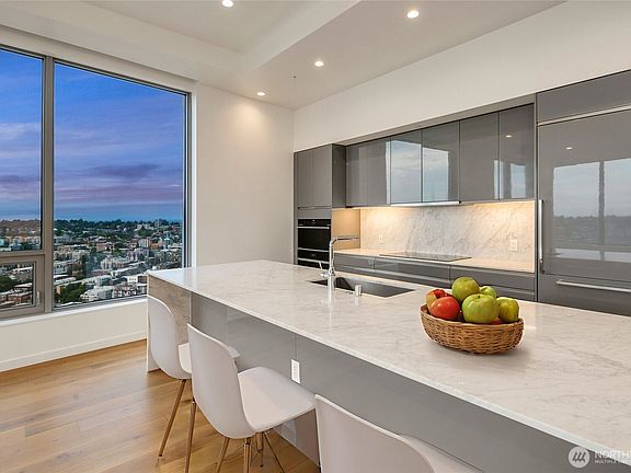 PH203 at The Nexus is a rare 3,000-sq-ft penthouse offering sweeping panoramic views. Completed in 2020, this 3-bed, 3-bath home blends modern luxury with floor-to-ceiling windows, refined finishes, and expansive open living spaces. Enjoy a primary suite with a five piece bathroom and a walk-in closet. Home also comes with and a full second guest suite. Two additional bedrooms that overlook the city. The Nexus elevates daily living with concierge service, fitness center, dog and media lounges, plus the 41st-floor Sky Club with exhibition kitchen, private dining, lounge, and terrace. This home comes with six parking spaces and two storage units included. Ideally located in downtown Seattle for those seeking sophisticated urban living.