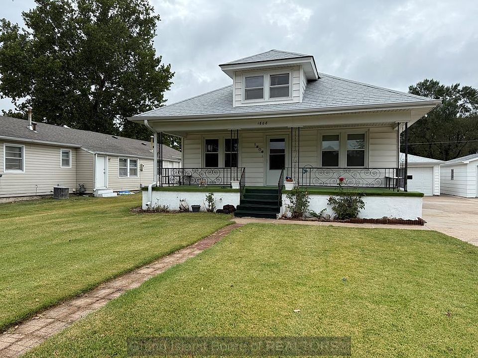 Move In ready!! Check out this well taken care of bungalow home with covered front porch which features 2 bedrooms, updated bathroom, kitchen with pantry, Living room & dining room with gorgeous resealed hardwood floors on the main level. The basement features new carpet, 3 non conforming bedrooms, family room bathroom & Laundry/utltity room. New paint throughout the home. Outside you will find a 2 car oversized detached garage, fenced backyard & shared driveway. This home is a must see! Contact your Realtor today for a showing!