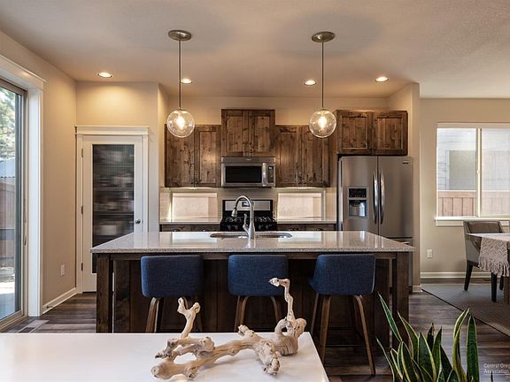 Award-winning Pahlisch Home with stylish & modern upgrades with 3 bed and 2.5 baths. Features quality finishes and an open floorplan. Incredibly convenient NW Bend location halfway between downtown and NW Crossing. Newport Landing is walking/biking distance to coffee shops, shopping, restaurants & trails. Lightly lived in and immaculately cared for, this is the perfect home for simple living & ease of maintenance. Enjoy a gas range in the kitchen, central A/C, beautiful gas fireplace and a great room concept with lovely outdoor living. New shades downstairs and blackout shades in bedrooms upstairs keep the abundant natural light out when necessary. The lovely backyard has views of Aubrey Butte and is perfect for grilling, sitting around a fire under the stars and artificial grass offers low maintenance. Double car garage has a bump out for workbench or extra storage and ceiling storage racks built in to conveniently store all your outdoor accessories.