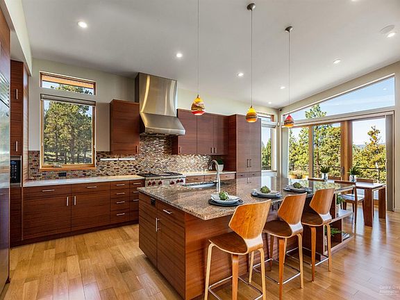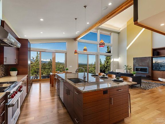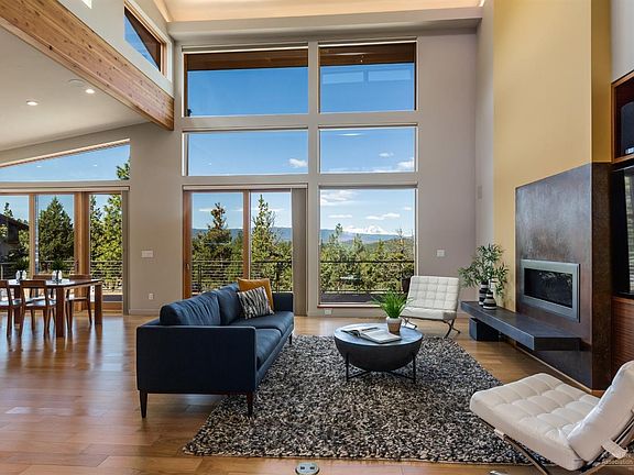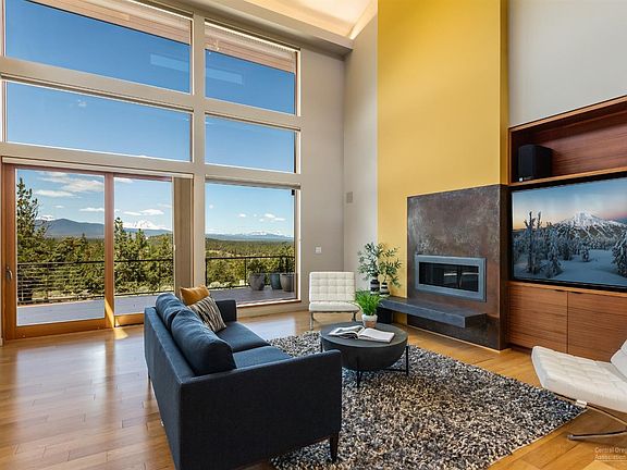 Spectacular Cascade Mountain views fill nearly every room of this stunning modern masterpiece. Serene and architecturally balanced with clean lines and a flowing open floor plan, the custom home features a stunning great room with expansive windows & clear white oak floors, gourmet kitchen with Sapele horizontal grain-matched cabinets, high-end stainless appliances, solid quartz & granite surfaces. Four en suite bedrooms, including a gorgeous main level master, office, 4.5 baths, loft + separate rec room provide ample space for family and guests. Outside, enjoy 3 outdoor living areas: main level & roof top decks with panoramic Cascade vistas + a spacious courtyard patio with spa, water feature and glass fire pit. Built to Earth Advantage Platinum standards & with exceptional quality, this high-performance home is insulated for tranquility & energy retention. Includes solar, radiant floor heat + natural gas HVAC for year 'round comfort.