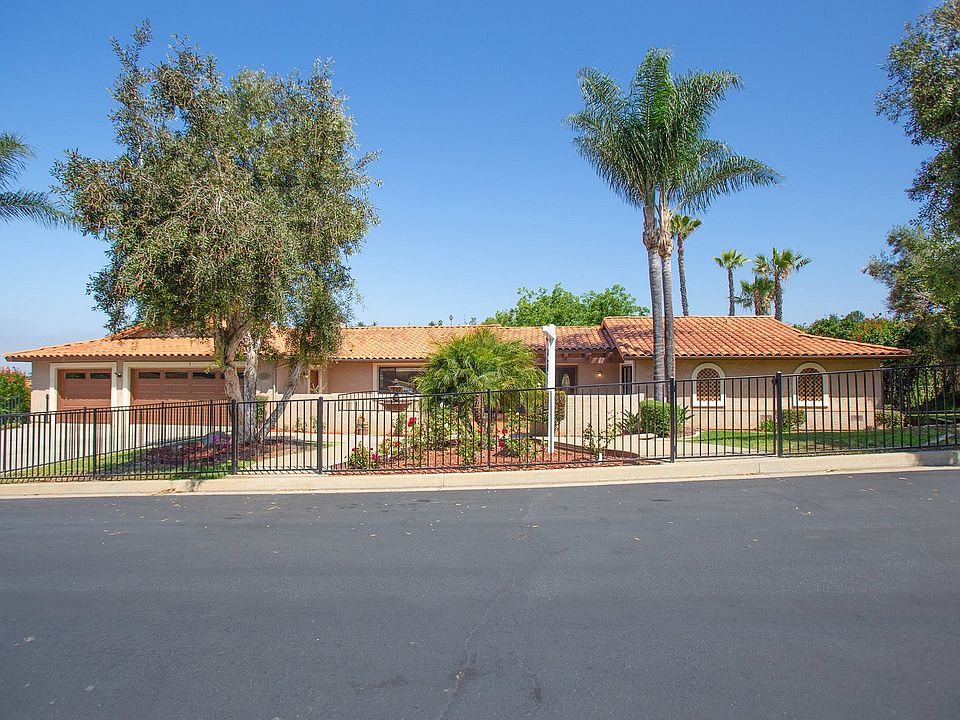 Private tropical paradise on half an acre in the Vista foothills with lush landscaping, fruit trees, mature palms & beautiful rose gardens. Lovely single-level family home featuring a resort style pool and spa, four bedrooms, three full bathrooms, adobe fireplace, new flooring & paint. The spacious master suite has been remodeled with garden jacuzzi tub, stone counters, extra cabinet storage, built-in closets & travertine flooring. Two bedrooms are located on one wing of the home, a possibility for multi-generational living. Attached three car garage for all of your hobbies!
