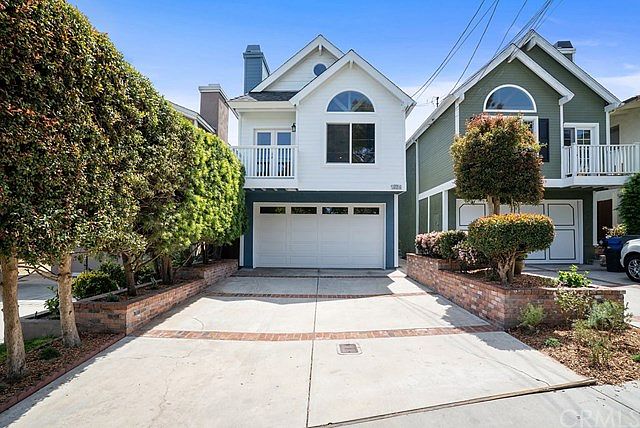 Tucked away in North Redondo, less than two miles from the beautiful beaches of the South Bay and across the street from Andrews Park, is this completely remodeled, three-bedroom residence designed to evoke both contemporary and beach cottage-style sensibilities. The home's pristine interiors span 2,038 sq. ft. across two levels, with the lower level providing direct access to the sun-soaked patio & yard. Complete with a vaulted wood-plank ceiling, fireplace, and balcony, the upstairs living room is altogether breathtaking and distinguishes itself from the step-up dining room and kitchen by way of a charming banister. Thick granite counters, a glass tile backsplash, and stainless steel appliances set the stage in the sumptuous kitchen while located down the hallway is the a-frame master suite offering a luxurious bath w/floating vanity, sunken tub, and glass-enclosed shower, as well as a private terrace. Additional upgrades include all-new plumbing, electrical, roofing, and A/C.