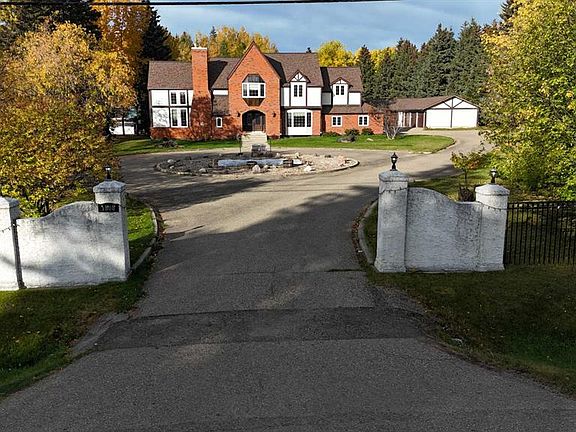 Prepare to be captivated by this completely renovated two-story Tudor-style residence, nestled on nearly two private acres. From the moment you enter, elegant arched entryways and exquisite craftsmanship set the tone for this remarkable home. The custom-built eat-in kitchen features granite countertops, a large center island, stainless steel appliances, and abundant cabinetry, perfect for any chef. A formal dining room offers an elegant setting for entertaining, while the family room and mudroom add comfort and practicality. The great room is the showpiece of the home, boasting soaring cathedral ceilings, a breathtaking two-story stone gas fireplace, and a spiral staircase leading to a floor-to-ceiling library loft, a true architectural highlight. Upstairs, the primary suite provides a luxurious retreat with a spacious walk-in closet, a stunning 5-piece ensuite, and convenient in-suite laundry. Three additional bedrooms and another 5-piece bathroom ensure plenty of space for family and guests. The fully finished basement offers a large recreation room, an additional bedroom, a 4-piece bathroom, and ample storage and utility space, perfect for kids, hobbies, or a home gym. Outside, enjoy the ultimate in outdoor living with a composite patio and pergola, firepit, pond, BBQ shelter, and hot tub. A paved circular driveway, RV parking, attached garage, and an additional heated 5-car garage provide abundant parking and space for all your vehicles and toys. This property blends timeless Tudor charm with modern luxury and functionality…a rare find in Edson!
