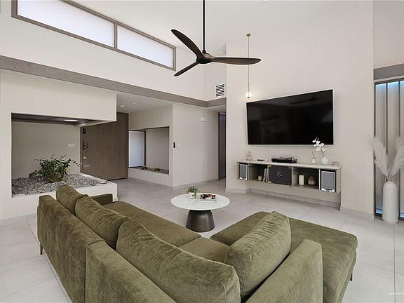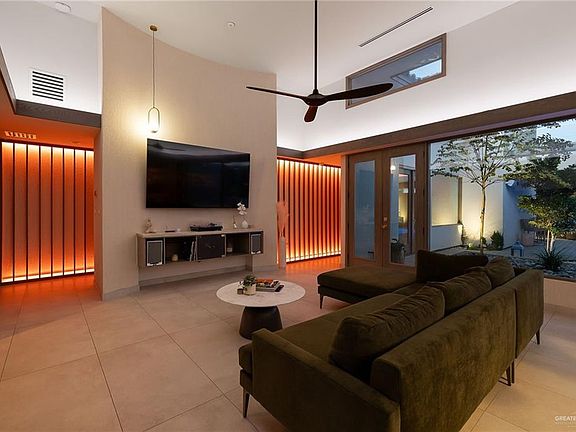 Exceptional Modern Residence. This stunning home is defined by clean architectural lines and an open-concept layout that balances contemporary style with everyday comfort. Expansive windows and glass doors fill the interiors with natural light, seamlessly connecting the living spaces to the outdoor courtyard and sparkling pool. The gourmet kitchen and dining area showcase warm wood cabinetry, built-in appliances, and floating shelves, blending function with modern elegance. A neutral palette, refined finishes, and designer details create a timeless atmosphere of luxury throughout. Outdoors, the private courtyard design offers a tranquil retreat, complete with a pool ideal for entertaining or relaxation. With 3 bedrooms, 3.5 bathrooms, and a private theater room, this is an exceptional home where elevated design meets effortless living.