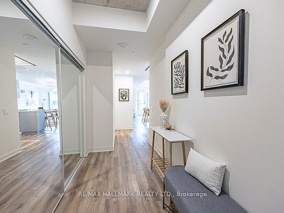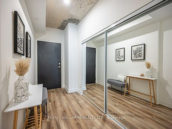 Welcome to this spacious two bedrooms and two bathrooms loft like unit at Reunion Crossing. A 1 year old modern development in Torontos sought-after Junction neighbourhood. This residence is designed with modern finishes located at unbeatable location, offering the perfect balance of comfort, convenience, and urban living. It features an upgraded kitchen with a sleek island. The open-concept layout ensures that every square foot is maximized, allowing the living, dining, and kitchen areas to flow seamlessly together. Large floor-to-ceiling windows fill the unit with natural light, while the balcony provides a private outdoor area to relax, and unwind. This revitalized and up-and-coming neighbourhood offers a vibrant energy while maintaining a welcoming, community-oriented feel. Within walking distance, you'll find schools, and parks, minutes away are Stockyards Village Shopping Centre, grocery stores, cafes, and local bakeries. For commuters, transit is just steps from building connecting you across the city. Enjoy a wide range of building amenities that extend your living space beyond the walls of your unit. These include a designer lounge and party room for hosting gatherings, a games room for recreation, and a rooftop patio with dedicated BBQ areas, an equipped gym, and a pet washing station for per owners. This unit is move-in ready and comes with kitchen stainless steel appliances, stacked clothes washer and dryer, custom window coverings and existing light fixtures. It includes one parking space and one storage locker. If you are looking for a home that combines modern comfort with convenience and community in one of Torontos most up-and-coming areas, this condo unit is the perfect choice. Schedule your private showing today and experience what it has to offer.