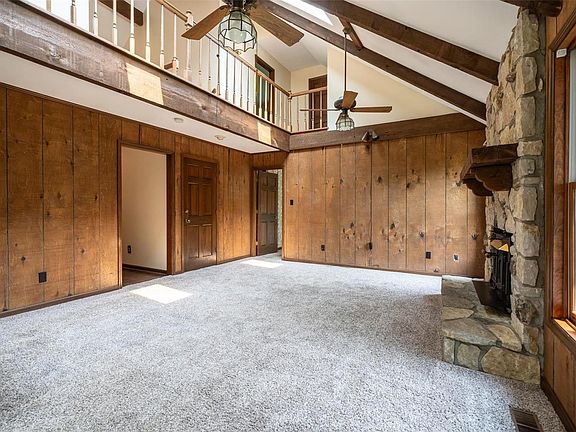 Imagine what this solid home could become when someone w/vision becomes it's new owner! A convenient location for this 3 acre property w/mature trees that surround the home for that privacy you've been looking for! This home offers a rustic but inviting feel with wood beams that accent the vaulted ceilings w/loft plus a stone fireplace in the open great room. The breakfast room w/bay window flows into the kitchen & is just off the formal dining room! A large MF master includes en-suite bath w/dual sinks & step-in shower + 2 closets. Upstairs, 2 spacious BRs offer huge closets, plus a cubby area w/built-ins...great for a sitting area! Make use of the MF office/den OR finish the lower level for more living space! The screened porch is perfect for your coffee while you enjoy the quiet setting of the treelined backyard. A small stable type building could work for horses...no fencing, though. TLC needed but strong bones! Make it your HOME! "SOLD AS IS" Seller to do no repairs/inspections