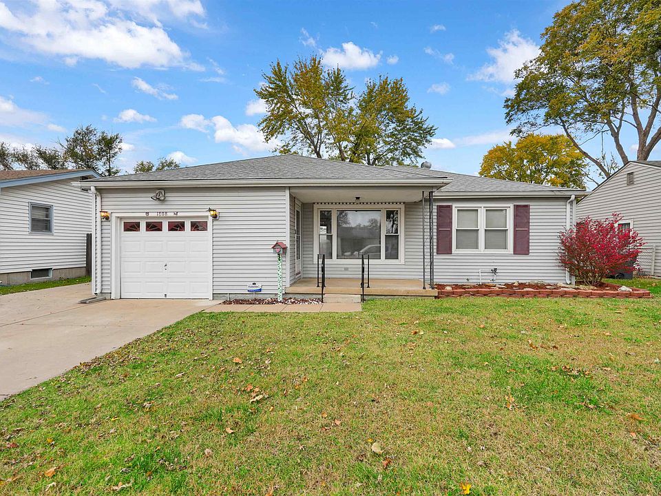Don’t miss this move-in-ready 3-bedroom home (plus a 4th non-conforming bedroom!) tucked in southwest Wichita. You’ll be just a short walk from Woodman Elementary and Truesdell Middle School, with quick access to I-235 for an easy commute and close to local favorites like Osage Park and Wildwood Park. Out front, you’ll love the oversized driveway with an extra parking extension off the side of the garage. The vinyl siding and windows make maintenance easy, and the covered front porch gives you a nice spot to relax. Step inside to a large, inviting living room featuring beautifully refinished original hardwood floors that flow throughout the home. Natural light pours in through the big front window, and the space opens nicely to the dining area with a sliding glass door leading out to the back deck. The kitchen offers plenty of storage, solid-surface countertops, and new luxury vinyl plank flooring. Just past the kitchen is the laundry area and a 4th non-conforming bedroom that could make a great home office, playroom, or hobby space. From there, you’ll find access to the remaining garage area. Roughly half of the garage has been converted into extra living space but can easily be converted back to a full garage if desired. The current arrangement is perfect for a motorcycle, lawn equipment, or extra storage. On the other side of the home, built-in storage lines the hallway leading to three bedrooms and a full bathroom. Each bedroom has the same beautiful hardwood floors and updated light fixtures. Step outside to a large back deck with a partial privacy wall, perfect for grilling or entertaining. The fully fenced yard includes mature trees, three storage sheds (yes, three!), and an irrigation well. The largest shed would make an excellent workshop or extra storage space. This home is truly move-in ready with room to grow and enjoy. Call today to schedule your private tour!