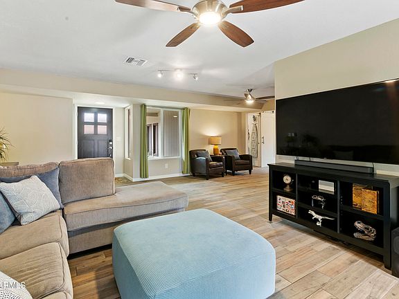 Welcome to this well cared for and move-in ready home in Dobson Ranch. Updated white kitchen includes shaker cabinets, stainless steel appliances, and quartz counters. Both bathrooms have also been updated. Two secondary bedrooms in the front of the home and a large master with en-suite bathroom in the back. Front living room with a fireplace and tons of natural light. Additional family room in the back of the home. Ample sized backyard with a sitting area and artificial turf. Great community with amenities: golf, pool, gym, tennis, racquetball, and rec center. Ideal location provides easy access to just about any part of the Phoenix metro area including the airport, shopping, ASU and all major freeways.