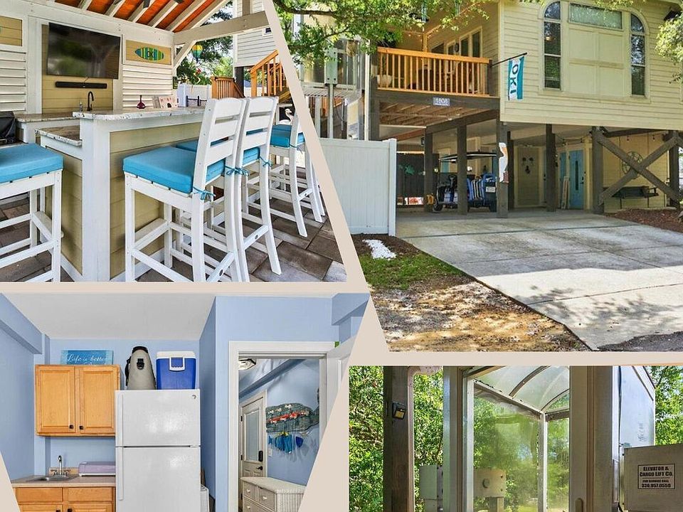 This one is like no other featuring quality and upgrades such as fortified roof, raised wood beam ceiling, stone surround gas log fireplace and a backyard that may have you wanting to just live outside! Ground floor efficiency with its own private entry. This can be your personal Coastal home with Elevator & Outdoor Oasis in Oak Island! Take the elevator to the top or enter through the dry entry foyer, ensuring comfort in all weather. Boasting a gas Jenn-Air and large corner pantry will thrill the chef's heart and a gas log fireplace with stone surround is ideal on chilly evenings. Entertain family and friends in the spacious great room. The primary suite offers brand-new carpet, a spacious ensuite with a double vanity, large walk-in shower, and plenty of room to enjoy your private retreat.