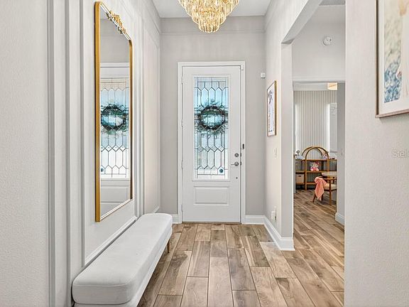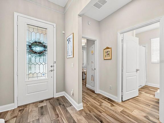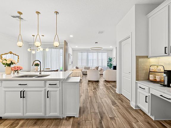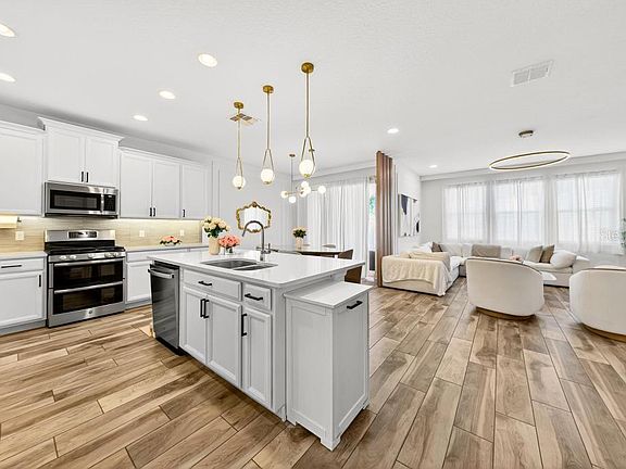 Welcome to this stunning, like-new 3-bedroom, 2-bath home in the charming Hull Island community of Oakland, just 0.5 miles from the West Orange Trail, 1.5 miles to Costco, and only 10 minutes from historic downtown Winter Garden. Recently updated and truly move-in ready, this split-plan residence shines with beautiful wood-look tile flooring throughout (no carpet anywhere!), fresh backyard turf just one year old, a brand-new dishwasher, and thoughtful upgrades in every room. Step inside to an inviting open layout where natural light abounds. The gourmet L-shaped kitchen is a chef’s dream, featuring abundant 42” maple cabinetry, quartz countertops, a tiled backsplash with sleek LED under-cabinet lighting, a gas range, a large center island with breakfast bar, an oversized walk-in pantry, and a built-in tech desk perfect for daily organization, charging devices, or remote work. Tucked at the rear for ultimate privacy, the serene primary suite offers a tray ceiling, expansive windows, and a spa-like ensuite bath with dual quartz vanities, an oversized shower showcasing upgraded subway tile and river rock flooring, semi-frameless glass enclosure, private water closet, and a huge walk-in closet. Two bright secondary bedrooms share a stylish hall bath at the front of the home. Relax or entertain on the covered lanai overlooking the fully fenced backyard with fresh turf and an extended paver patio. The custom backyard playhouse conveys, along with the washer, dryer, and security system. Additional upgrades include a tankless gas water heater, interior laundry room with utility sink, blinds on all windows, and all appliances included. Hull Island residents enjoy a resort-style pool with cabana, playground, bark park, scenic walking trails, and a peaceful dock on Lake Apopka, plus easy access to the Florida Turnpike. Impeccably maintained and turnkey in every way, schedule your private showing today and fall in love!