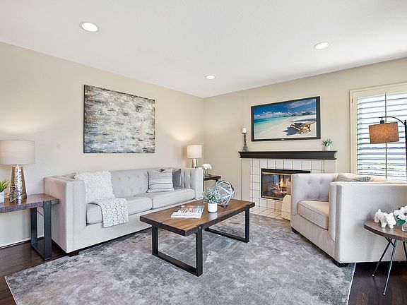 Beautiful hardwood floors sweep you into this delightful corner home, perfectly anchoring the space and highlighting the soaring ceilings and open plan living spaces. Plantation shutters allow the perfect amount of light for every occasion, and the powder room is perfect for guests or family. A cozy fireplace warms up the family room and invites you to relax at the end of your busy day, or revel in the wonderfully appointed kitchen, with stainless appliances, light granite counters and crystal pendant lighting - the perfect place to create a meal for loved ones. Then take the moment outside into your PRIVATE back yard with plenty of room to cook or entertain! As the day draws to a close, your spacious Master Bedroom features vaulted ceilings and a generous master bath with two vanities, privacy toilet and an impressive walk-in closet with organizers. The secondary bedrooms are delightfully finished with lighted ceiling fans and large closets. The hall bathroom means all the details are taken care of. An ATTACHED, DIRECT ACCESS 2-car garage completes the picture. This is the One to call Home!