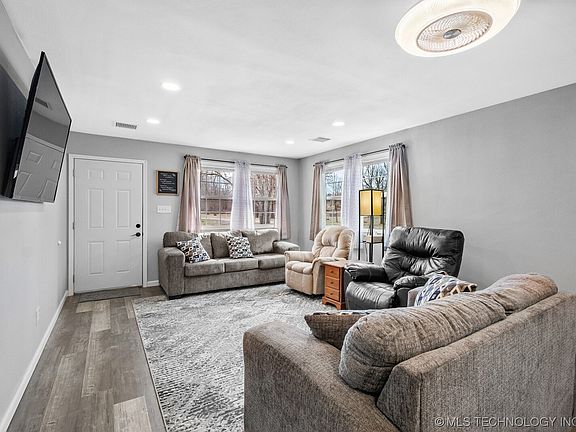 Practically all new, freshly remodeled.! Just outside of Colcord, easy access to Northwest Arkansas & Hwy 412, sitting on 7 beautiful acres with spring fed pond. New roof, decking, HVAC, plumbing, guttering, electrical wiring, can lights w/dimmer switches, sinks, faucet, shower, kitchen cabinets, countertops, stove is also a convection and air fryer oven, wrap barrier & Smart Siding, 45 gallon hot water tank. New well line to the house, new 86 gallon pressure tank, chlorine filter and carbon filter. New insulation in walls and blown in attic, attic lights, landscaping and underground electric and BOLT internet. Close to Flint Creek water park and WOKA Water Park