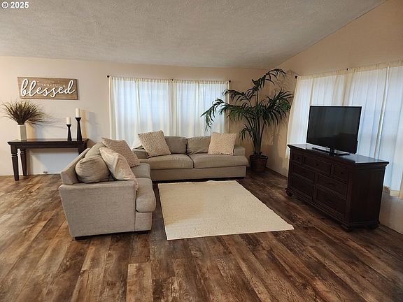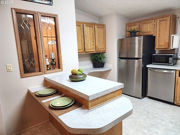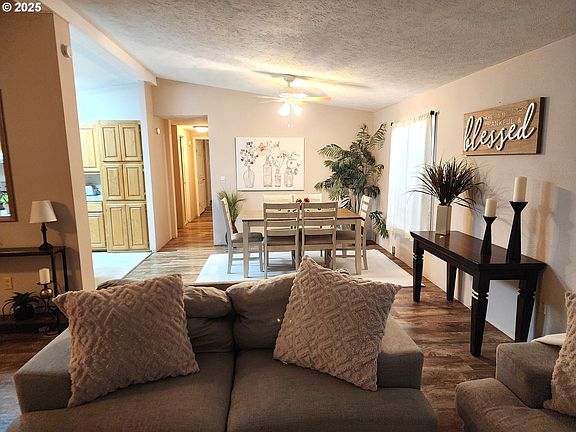 Comfortable living with style and affordability in Stonewood Mobile Home Park La Grande, OR. 1992 doublewide manufactured home has an open floor plan, 2 bedrooms and 2 bathrooms. Large master suite with shower, walk-in tub, and his and her sinks. Laundry room with built-ins has door to covered deck, fenced back yard, and carport. Freshly painted exterior. Park management approval is required. Site rent is currently $765.00 a month which includes garbage service.