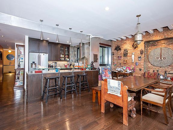 Come and experience this category-defying, approximately 1750 sq ft gut-renovated masterpiece with treetop and Central Park views. The product of a lavish renovation by its current owners, Apartment 5C will surprise and delight you at every turn. The open chef’s kitchen features a stunning Miele range hood, GE wine fridge, gas oven and range, microwave/convective oven, Bosch dishwasher, and Frigidaire Professional refrigerator. Pendant lighting shines above the several yards of imported stone kitchen countertop, which is crowned by a sleek glass breakfast bar with customized steel supports. The kitchen flows into the spacious dining and living areas, flanked by a vast expanse of sumptuous exposed brick, all the way to the oversized custom windows, which usher in west-facing views of sky, treetops and Central Park. Charming touches abound, such as the partly exposed ceiling beams, which impart a grotto-like openness to the space. Lighting is recessed with dimmers throughout the apartment, along with hidden lighting to add ambiance to art displays, kitchen and even bathroom cabinets. Both bedrooms are spacious, and the primary ensuite bath has twin sinks on one side and a luxurious separate bathing chamber with a glass-stall shower and deep-soaking tub.