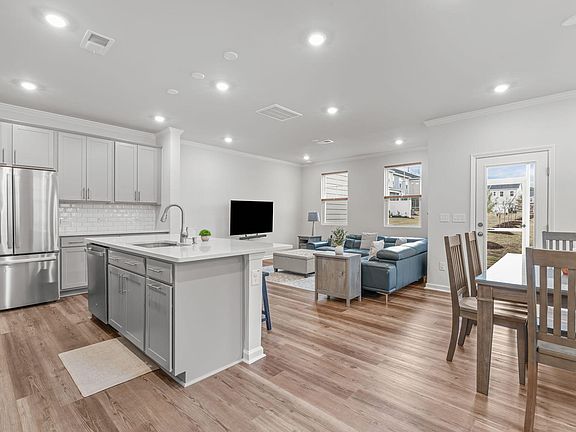 End unit townhome in the heart of Apex offering low-maintenance living at its finest. Perfectly located just minutes from major highways, Beaver Creek Shopping Center, Historic Downtown Apex, and the new Pleasant Park. This home backs to open space, providing a sense of privacy rarely found in townhome living. Situated in the sought-after Depot 499 ''live, work, play'' community, residents enjoy an array of amenities including a clubhouse, swimming pool, playground, walking trails, and fire pits, all within a beautifully designed master-planned neighborhood featuring green spaces, play lawns, and picnic areas. A covered entry welcomes you home to wide-plank luxury vinyl flooring throughout the main level. The stunning kitchen showcases a center island with quartz countertops, a brick-laid tile backsplash, and stainless steel appliances including a five-burner gas range and built-in microwave, all open to a sunny dining area and spacious family room with abundant recessed lighting. Oak stairs lead to the second floor where you'll find an enormous primary suite featuring a tray ceiling, huge walk-in closet, and an opulent bath with dual vanity, oversized shower, and private water closet. Two additional ample-sized bedrooms share a luxurious hall bath with double vanity and tub/shower combination. A large second-floor laundry room with a spacious utility closet adds convenience. Relax and unwind in the lovely screened-in patio offering tranquil views of the pond and surrounding trees.