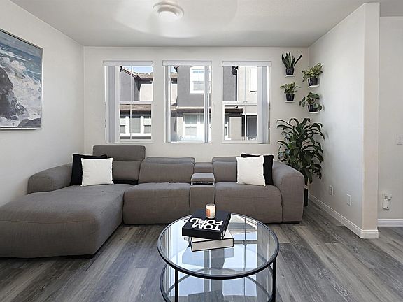This three-story townhouse features 2 bedrooms and 2.5 bathrooms, with an attached two-car garage is equipped with paid off solar panels and whole house water filtration and softener system. The modern kitchen is equipped with SMART app based newer appliances including: gas stove, microwave, refrigerator, washer and dryer, and ECOBEE thermostat. Dining area opens into the living room, creating a spacious and inviting atmosphere. The luxury vinyl flooring throughout the home adds a touch of elegance and is easy to maintain. The top floor boasts a primary bedroom with a walk-in closet and direct access to a full bathroom. The second bedroom is equally spacious and has convenient access to a full hall bathroom. The second-floor living area includes a stylish powder room, perfect for guests. This home is equipped with fully paid solar panels, a water filtration system, and a water softener, making it an eco-friendly and sustainable choice. The washer and dryer are conveniently located in the unit, adding to the convenience of this home. Located in a desirable condominium complex built in 2007, this home offers access to a community pool, perfect for those hot summer days. The complex is conveniently located near an abundance of shopping and dining options, making it easy to enjoy all that the area has to offer. This property is a great opportunity for anyone looking for a modern and sustainable home in a prime location. Don't miss out on this chance to make this beautiful townhouse your own!