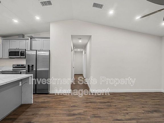Private fenced yardStainless steel appliancesRecessed lightingOff-street parkingLaundry hookups in homeTons of cabinetsCeiling fans