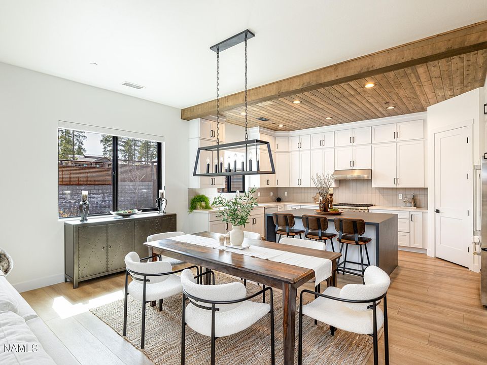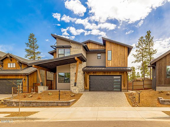 Welcome to 1809 E Magnolia Drive- Luxury Living in Juniper Point - Newly Constructed 5-Bed, 4-Bath Home in Flagstaff. Just minutes from downtown, NAU, Coconino Community College, and Pine Canyon, this exquisite residence offers a perfect blend of modern design and natural beauty. As you step inside, you're welcomed by an open-concept great room, highlighted by a 9-foot floor-to-ceiling tiled fireplace focal wall. The gourmet kitchen is a true showstopper, featuring a tongue-and-groove ceiling, aesthetic beam, waterfall-edge oversized quartz island, custom upper cabinetry, walk-in pantry, and premium appliances. The upper level features four spacious bedrooms, including the primary suite. Primary suite offers a luxurious tile and glass surround shower, dual sinks, a linen closet and a generous walk-in closet. One of the secondary bedrooms is an ensuite providing added privacy and comfort. The 9-foot ceilings throughout the upstairs adds to the open and airy feel.
