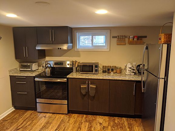 Beautifully remodeled basement apartment one block from the Forest Glen Metro. Spacious floor plan with updated kitchen and bathroom. Fully furnished, including a Queen-sized Casper mattress, cooking utensils, a 40" Roku-connected TV, and a comfy couch. Washer/Dryer available in a utility room shared with the owners. Fully dedicated parking spot and a private entrance. Wifi and all utilities included. Must sign a lease agreement, provide 1 month's security deposit, and pass a background check. 12 month leases available at the following rates: Month to month: 2800/month 3 - 5 months: 2600 6 - 11 months: 2300 12+ months: 2100 1 small dog is allowed with the pet fee at $90/month All utilities and furniture included in the lease rate.