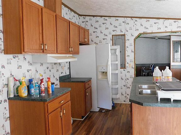 Excellent location! Mobile home with permanent foundation on approximately 0.73 acres. 3 Bedrooms and 2 Bathrooms with spacious eat-in kitchen and walk-in pantry. Living room/dining room combination with fireplace. Master bedroom has 2 walk-in closets. Large master bathroom. Deck on back. There are 2 storage buildings -- one of them has electricity. Large lot with trees in the back.