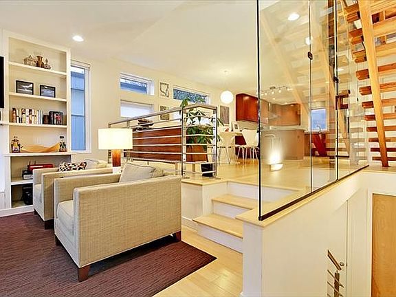 Exceptional green-built townhome in the heart of Wallingford. A fantastic open floor plan showcases stunning architectural designs, floating staircases, steel railings, glass wall, custom built-ins & more. This lux-modern boasts three en-suite bedrooms, an exquisite master, chefs kitchen and great entertainment functionality. A rooftop deck features views of the city, Space Needle, Lake & Mountains. 2 balcony's, fully fenced south-facing backyard and patio add to the outdoor living spaces.