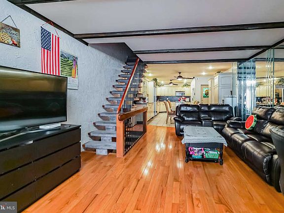 This move-in ready, well maintained home just a short distance from the stadium complex, FDR Park, and more, is too good to be true. Private 2 car parking in the rear is a welcoming luxury. Enter ornate double wooden doors into your tiled foyer that leads right into the spacious open floor plan. The living area features gorgeous hardwood floors,striking exposed beams, and plenty of space for entertaining. The large eat in kitchen offers newer appliances, plenty of cabinets and built-ins, and that high end Sub-Zero refrigerator and Jenn Air stove you always wanted. A door off the kitchen leads to your synthetic low maintenance deck! There is also a powder room on the main level for your guests. The upper level features 3 spacious bedrooms with closets, and a full bathroom. Plenty more space down in your finished basement featuring hardwood floors, recessed lighting, an additional bedroom and full bathroom. Enjoy all the benefits on a move-in ready home in a fantastic area!