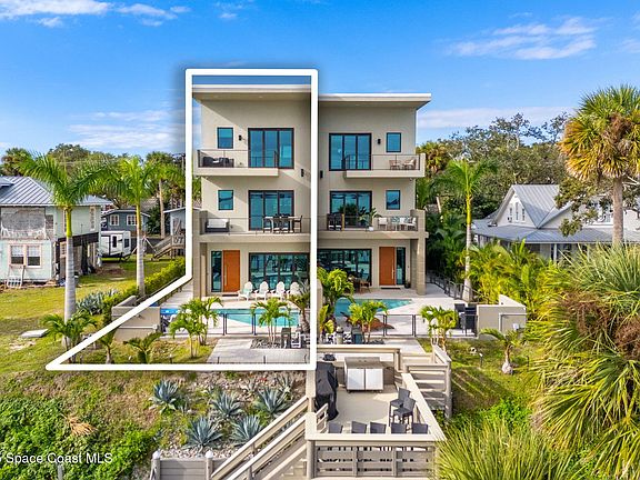 Gated entryTwo-car garageSculptural marble-and-oak floating staircaseSleek porcelain flooringPanoramic indian river viewsCustom cabinetryPremium appliances