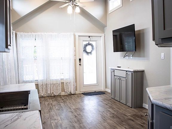 Welcome to your charming 2023-built tiny home—a perfect blend of style, efficiency, and convenience in a peaceful Rogers community. This single-level, all-electric 1-bedroom, 1-bath home offers low-maintenance, low-cost living with quality upgrades throughout. Step onto the inviting front porch and into a thoughtfully designed interior featuring durable LVP flooring, window blinds, ceiling fans, double-insulated walls, and two energy-efficient mini-splits for year-round comfort. The kitchen shines with abundant storage and full-size stainless steel appliances, while the bedroom boasts dual closets with a built-in dresser for exceptional organization. All appliances convey—including washer, dryer, and refrigerator—making this truly move-in ready. Additional highlights include a metal roof, detached 350 sq. ft. storage building, and a metal carport. Enjoy the unbeatable location—minutes from Downtown Rogers, shopping, dining, parks, schools, the greenway trail, hospital, and fire station. Must be owner-occupied; rentals not permitted.