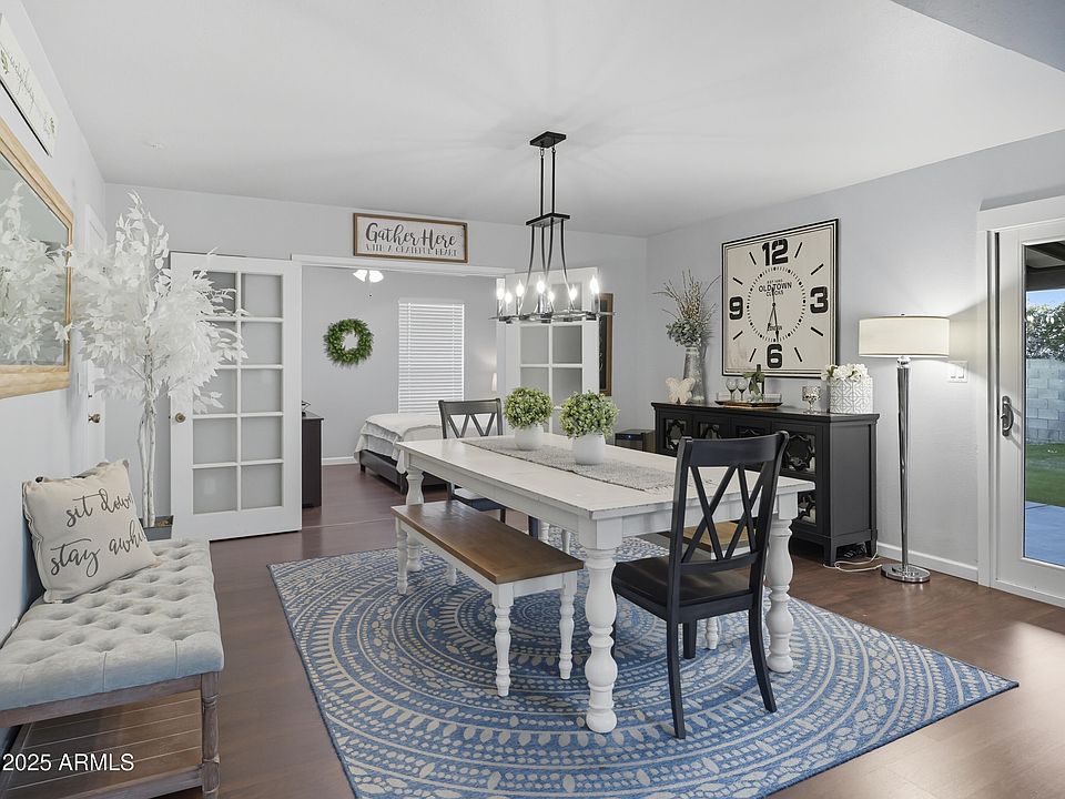 Spacious! Updated 5 bed, 2 bath, 2 car-g on one of the best *cul-de-sac lots in the community!*NEW Roof *Paver Courtyard *Soaring ceilings *Floor-to-ceiling stunning brick fireplace *Kitchen features:*NEW Calacatta QUARTZ counters through-out! *S-S appliances *NEW sink *NEW Tile *NEW glass slider *NEW windows on 1st floor *NEW LVP flooring on main level & stairs *Primary suite downstairs w/vaulted ceilings *Neutral paint pallet *2nd bedroom downstairs used as an office *3 ample size bedrooms upstairs w/ NEW carpet *Wide Lot/Mature trees *NEW 34'x12' back-patio *NEW sports-court *NEW auto-irrigation *Water heater '22 *Impeccably maintained! *Community lap pool, walking trails *Excellent proximity to US60 & 101fwy, golf, shopping & walking distance to JrHigh, Nothing like it under 550K! .