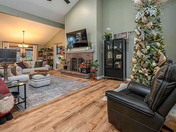 Welcome to this stunning 1.5-story home in the highly desirable Spring Garden Estates! Set on a spacious .72-acre lot, this meticulously maintained home boasts brand new siding and eye-catching cedar shake accents. Step inside to discover soaring ceilings and gorgeous luxury vinyl plank flooring throughout, creating an open and airy feel. The centerpiece of the living room is a beautiful brick wood-burning fireplace—perfect for cozy evenings. The living room flows effortlessly into the informal dining area, making entertaining a breeze. The chef’s kitchen is a dream, featuring the largest island you've ever seen, complete with abundant storage. The heated tile floors add a touch of luxury, and the kitchen comes equipped with a dishwasher, built-in oven, and stove top. For relaxation, the home even includes a sauna! The main level offers a versatile bedroom—ideal as a master or guest suite. Upstairs, you’ll find two spacious bedrooms and a large Jack-and-Jill bathroom with double sinks, a jetted tub, and a walk-in closet. The loft area makes for a perfect home office or quiet retreat. Step through sliding glass doors onto the expansive deck with endless possibilities to create your own outdoor oasis. Plus, there’s plenty of yard space left to make it your own! A three-car garage completes this perfect package. This home is a must-see, call today for a showing!