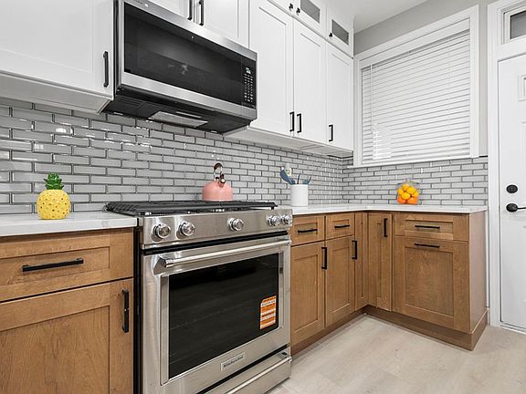 Designer finishesModern vanitiesOversized islandIn-unit laundryCompletely remodeled apartmentDesigner backsplashCustom soft close cabinetry