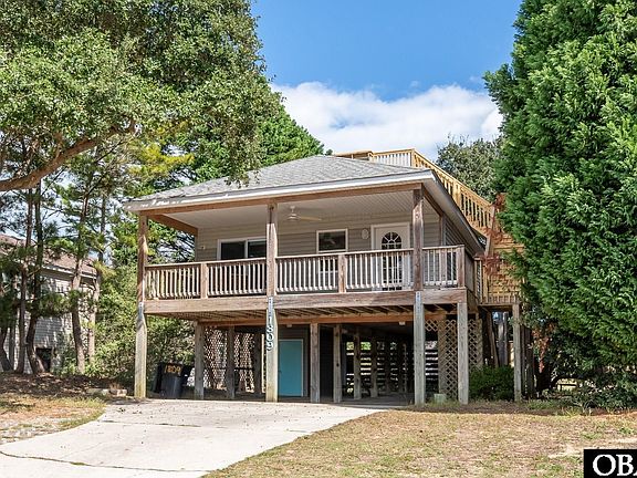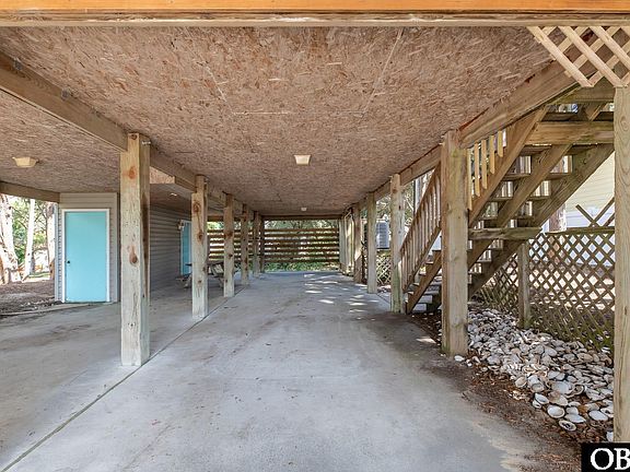 VACANT EASY TO SHOW Charming beach-box style home located in the Sea Holly Ridge subdivision of Kill Devil Hills! This 3-bedroom, (1 Master) 2-bath home is located in an X flood zone (Flood Insurance NOT required):WANT MORE ROOM downstairs can be enclosed and the interior steps are already in place Enjoy ocean views from the NEW rooftop deck. The home offers a spacious backyard, carport with dry entry. EXCELLENT MAINTENANCE New OUTDOOR SHOWER August 2025 New July 2025 steps and an amazing roof top DECK with 2 Benches, Trees trimmed 2025, HVAC NEW 2024, Hot water tank LTV flooring 2018, Dryer 2019, Septic pumped 2019, replaced underground waterline from the street meter to home and installed new main cut off and drain line September 2021,