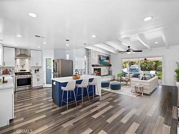 Welcome Home to Blue Ridge Dr. Tucked away on a peaceful street in the coveted Saint Hubert’s Woods neighborhood, this beautifully updated single-story ranch home offers a rare blend of comfort, style, and space. Set on a 13,900 sqft of flat, usable land, the property invites you to enjoy the best of indoor-outdoor living in one of North Tustin’s most beloved communities. From the moment you arrive, the curb appeal is undeniable. Lush landscaping, mature shade trees, and blooming gardens create a warm welcome, while the classic Dutch door adds timeless charm and functionality. Inside, this renovated 4-bedroom, 2.5-bath residence is bright, open, and designed for both daily living and effortless entertaining. The heart of the home is a light-filled kitchen with vaulted ceilings, soft-close white shaker cabinetry, new stainless steel appliances, a 5-burner gas cooktop, built-in microwave, and wide-plank luxury vinyl flooring that mimics the look of natural hardwood throughout. A cozy family room with a whitewashed brick fireplace and casual dining area flow seamlessly from the kitchen, while a separate living room with stone fireplace offers additional space to relax or host. Just off the main living areas, a guest half-bathroom is thoughtfully placed for privacy. The primary suite is a true sanctuary featuring a remodeled en-suite bath with custom steam shower, jetted spa tub, and tranquil views. Two additional bedrooms offer built-in features and ceiling fans for comfort and convenience, while the fourth bedroom is ideal for a home office or guest room. The remodeled secondary bath includes quartz countertops, double sinks, and a modern walk-in shower. Step outside to your private resort-style backyard—complete with a covered patio perfect for al fresco dining, an expansive pool with rock slide and Baja shelf, and lush landscaping that provides privacy and serenity. The pull-through 2-car garage opens to a 25-ft concrete pad, ideal for extra vehicles, storage, or even a game of pickleball. An extra-wide driveway ensures ample space for guests, RVs, or recreational toys. Recent updates include a new HVAC system, new water heater, new pool equipment and resurfacing 2023, and electrical upgrades. With no HOA, enjoy the freedom to make this home your own. Steps from the Esplanade Trail, a quick drive to Peter's Canyon, and minutes from top-rated schools, shopping, and dining—this North Tustin home offers the lifestyle you’ve been dreaming of.