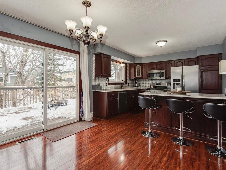 Check out this lovely single family home that's just 0.1 miles from the beautiful Dakota Estates Park. The home is just mere minutes away from a wide variety of restaurants and shopping and just 20 minutes from Mall of America. This house features a gorgeous updated kitchen with stunning hardwood flooring throughout the entire upper level. If you're looking to enjoy the sunshine in this beautiful quiet neighborhood, the spacious deck is a great area for grilling and hanging out with family and friends. For more outdoor options head down the stairs of the deck to a cozy fireplace area in your fenced in backyard. As an added outside perk, a spacious shed for any additional storage space you may need is housed in the corner of the lot. Head back inside and you'll find a beautiful vintage gas fireplace that is sure to keep you warm in the winter months. A small kitchenette downstairs and spacious utility/laundry room are just some added benefits to this amazing home. Finally, the 2.5 car garage has plenty of storage space along with some additional built in shelving. Come take a look at what could be your new home today!