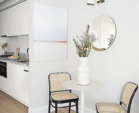 Overlooking the building’s lush interior courtyard, this tranquil home offers peaceful, garden-like views rarely found in city living. The spacious layout easily accommodates distinct areas for sleeping, dining, and lounging, creating a comfortable and flexible living experience.