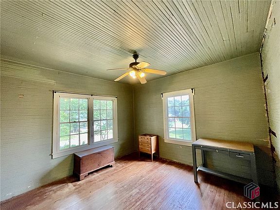 A Chicopee Dudley Diamond in the rough located blocks from downtown, Greenway Trails, Dudley Park, Walker Park, north campus, and the multimodal transportation center. This 1928 mill house with a shared driveway has the same charm as it did when it was first built with its beadboard walls, tall ceilings, large windows, heart pine floors, and a large, screened front porch elevated above the street and a view of downtown from the back porch. Original features include original six over six windows, tongue and groove bead board walls and ceilings, six over six windows. Fireplace surrounds and mantles, with a chimney insert for a wood stove in the living room. Even the original dust boxes are stored in the attic, which is large enough for a possible loft. The backyard has stone accents, multi-level garden terraces replenished annually with compost, and enough room for a guest cottage or studio. This home is habitable, but does have some deferred maintenance including past termite damage.