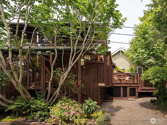 A must see - first time on the market! Located in the heart of Seattle in the coveted Madrona neighborhood, set on a private wooded lot on a dead end alley above Harrison Ridge greenbelt in walking distance to Lake Washington beaches and parks. Custom designed and built in 1977, this unique gem boasts lots of character and thoughtful details. Vaulted ceiling, exposed beams, pine flooring, reclaimed stained glass, gable windows and vintage light fixtures. Skylights and plenty of windows let in much light, French doors spill out onto patios on both sides inviting outdoor living. A sleeping loft. Off street parking. Recent updates include new appliances, new carpets, new paint inside and out, a new high efficiency furnace being installed 7-3.