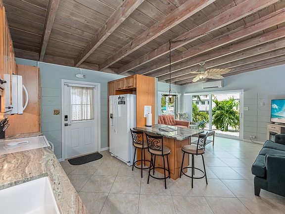 Beautiful 2 bedroom, 2 bath canal front half duplex in the wonderful City of Key Colony Beach! You have the ability to add a 3 bedroom to this home! This home includes: 30' dock, 100' wide clean swimmable canal with quick ocean access, crane style jet ski lift, dock box and cleaning station, outdoor shower, spacious enclosed garage, elevated enclosed laundry room, beautifully updated kitchen with granite countertops, and original Dade County Pine wood beamed ceilings throughout the home. New Impact windows installed throughout the home and a new roof installed in 2021. New owners can install boat lift with proper permitting. This property has made an excellent weekly vacation rental since January 2023 making $67,000 in revenue! Walking distance to Havana Jack's Restaurant/Bar and the Cabana Club with pool and beach! Key Colony Beach has shopping, restaurants, 9-hole golf course, tennis courts, pickle ball courts, bocce, Sunset Park/Beach and several playgrounds for children. Key Colony Beach also offers morning exercise classes, craft classes, and other community events that are all accessible by walking or bicycle.