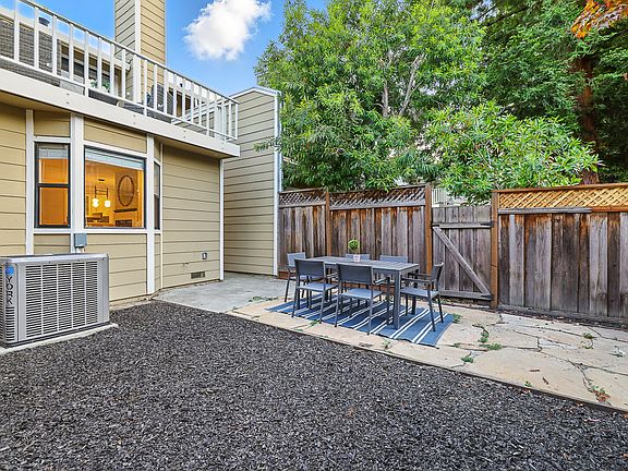 Tastily remodeled with high quality materials, this move-in ready townhouse is located in a quiet neighborhood in Mountain View, close to Google and many other companies. 2 bedrooms upstairs, each with en-suite bathroom. A large balcony upstairs looking down to the private backyard. Sleek kitchen with white shaker cabinets and quartz countertops, and stainless steel appliances. Large living room boast a modern fireplace and plenty of space for all your furniture. Another half bath downstairs. A large backyard ideal for relaxation and gardening. A one-car attached garage, with an assigned parking space right next to the house. Hardwood floor throughout. Central A/C. Available now. Photos show staging with furnitures, but now the house is unfurnished.