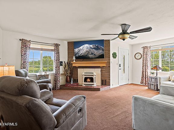 Charming Naches brick rambler home sits on a lush lot with mature trees and boasts a 4 bay detached garage. It has a remodeled kitchen with a large granite island and newer appliances. Showcases a beautiful fireplace and large double closets in the primary bedroom. Updated windows are e-gas thermapane. Many updates and custom finishes throughout the home. Beautifully constructed oversized pergola covers a fantastic sitting area behind the home. Land has water rights, irrigation and a sprinkler system. Sale also includes the adjacent parcel with a single wide manufactured home that has previously been used as a rental.