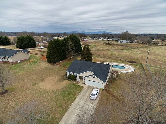 Your dream of peaceful living starts here in this 3BR 2BA open/split floor plan. This home offers charm and character from vaulted ceilings, crown moldings, private office with built ins. kitchen with stainless steel appliances, new back splash, breakfast bar and pantry. Other features include new floors coverings, fresh paint, updated fixtures and new plantation blinds throughout make this home move in ready. Step out into the fenced back yard relax under the pergola by the in ground pool while enjoying the mountain views. The backyard also features fire pit, batting cage, grill and chicken coop. Roof, pool liner and salt water pool pump all were replaced 2016. This home is located in a USDA zone. as well as the immensely sought after District 1 schools and 20 mins to Greenville and Spartanburg. This home will not disappoint!