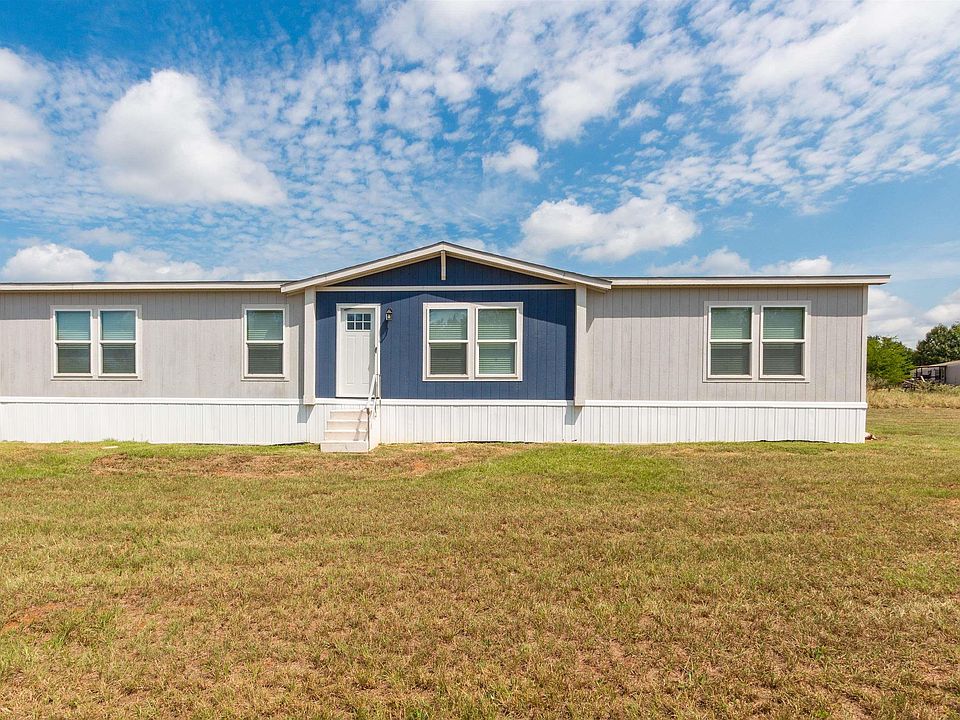 Set on almost an acre of land, this beautifully designed 3-bedroom, 2-bath modern mobile home offers both space and style, with thoughtful features throughout.  Inside, you’ll find two spacious living rooms—one that opens directly to the kitchen, making it easy to entertain and stay connected with guests. The kitchen is a true centerpiece, featuring a large island with seating for several barstools, abundant storage, and plenty of counter space for cooking and gathering. A separate dining room is tucked away to provide a more private setting for meals.  The second living room highlights a stunning electric fireplace that adds warmth and charm, creating the perfect spot to relax. Bedrooms and bathrooms throughout are generously sized, while the master suite offers a spa-like retreat. The master bath includes a separate shower and soaking tub, a double vanity, and a unique layout with direct access to the utility room, which conveniently leads back into the kitchen.  As an added bonus, the sellers are willing to sell the home furnished, making it even easier to move right in and start enjoying.  With its spacious floor plan, modern finishes, and nearly an acre of land to enjoy, this property blends comfort, functionality, and privacy—ready to welcome you home.