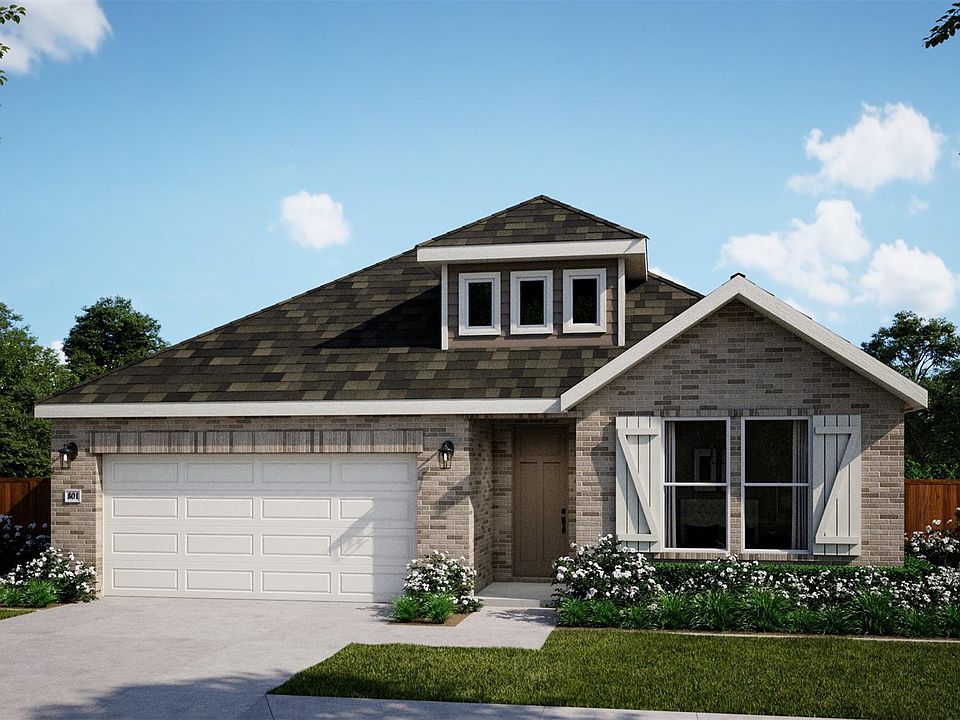 The Jaxon plan offers spacious single-story living with 2,069 square feet, featuring four bedrooms, three bathrooms and a versatile flex room. The open-concept layout connects the great room, dining area and kitchen while the primary suite includes a private bath and walk-in closet.