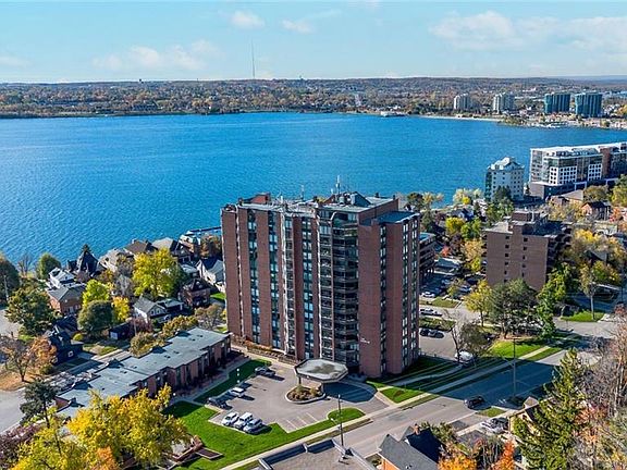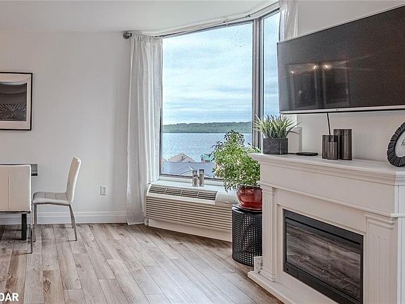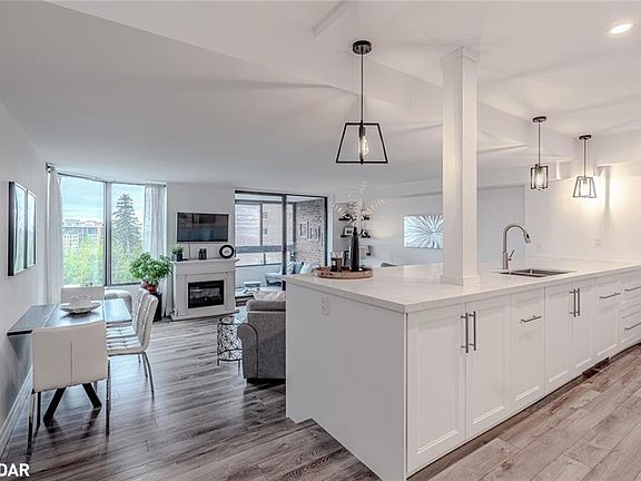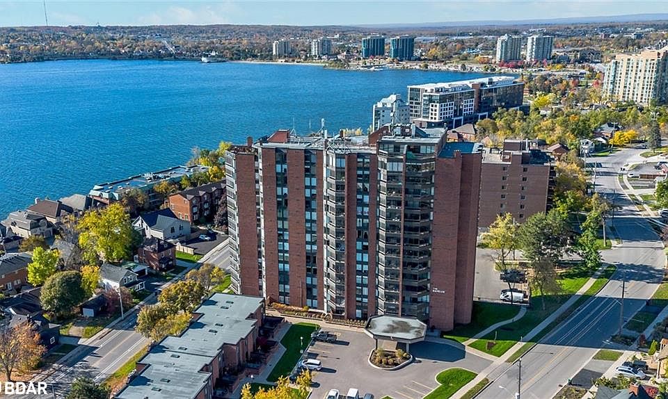 STUNNING, FULLY RENOVATED CONDO WITH OPEN-CONCEPT MODERN DESIGN, LAKE VIEWS, STEPS FROM THE WATERFRONT & THE BEST OF CITY LIVING! Live in the heart of it all with this upgraded Killdeer-style unit in Barrie’s vibrant City Centre, providing the ideal mix of comfort, convenience, and captivating views. Fully renovated with care and style, this unit stands out from the rest with fresh, modern finishes and a long list of thoughtful upgrades throughout. From the moment you step inside, you'll notice the attention to detail, starting with the stunning chef-inspired kitchen featuring an oversized island with bonus storage, quartz countertops, stainless steel appliances, and ample prep space. The airy living and dining area opens to a private enclosed balcony that showcases stunning views of Kempenfelt Bay. The thoughtfully designed floor plan separates the bedrooms for added privacy, with a spacious primary suite complete with a walk-in closet and 3-piece ensuite. Concrete ceilings add a touch of modern style to the bedrooms, complemented by updated pot lights, and durable laminate flooring throughout. Additional highlights include a dedicated laundry room and generous in-unit storage. Residents enjoy top-tier amenities including an indoor pool, sauna, fitness centre, tennis court, games room, meeting space, and visitor parking, while an exclusive parking space and a dedicated locker storage unit complete the package. Just steps from shops, restaurants, entertainment, and year-round community events, this location puts everything within reach - including Kempenfelt Park, the scenic North Shore Trail, and Johnson’s Beach. Enjoy a highly walkable lifestyle with the added ease of being less than 10 minutes from Highway 400, perfect for stress-free commuting. This exceptional #HomeToStay provides stylish, low-maintenance living with spectacular views, unbeatable walkability, and resort-style amenities - all in one of Barrie’s most dynamic and connected locations.