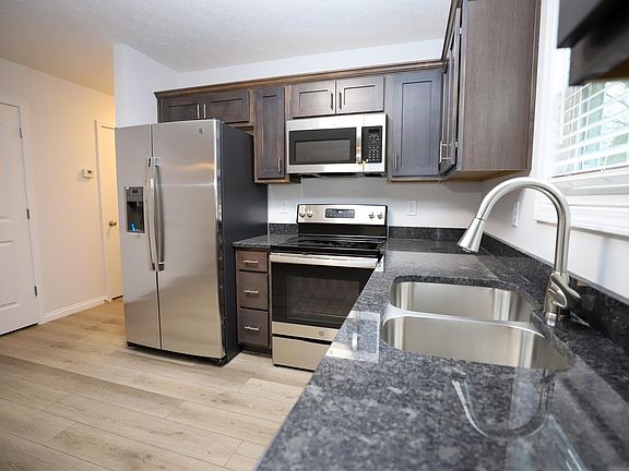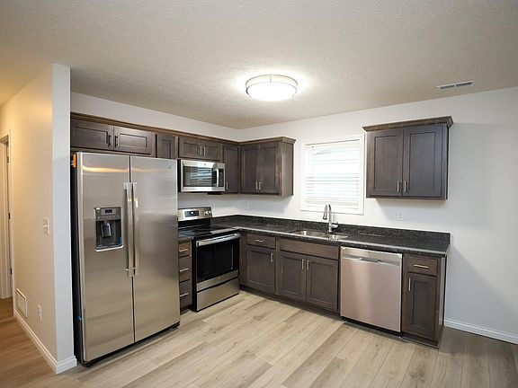 Please read the landlords screening requirements before scheduling a viewing. Welcome home to this "like new" duplex unit that is 4 years old. This home is loaded with upgrades and is located in Vine Grove, in an established neighborhood. The home features granite countertops, stainless appliances, laminate flooring throughout most of the home and carpet in the bedrooms. There are also ceiling fans in both bedrooms. The primary suite features a large bathroom with an 8x8 walk in closet and a personal walk out patio off the primary suite. This home also has a 1 car attached garage, a covered front porch and a concrete driveway. Located in Vine Grove only minutes from schools and Ft. Knox! Tenants pay electric, water, sewer and trash. These units are all electric. No smoking inside the units. The landlord pays for the mowing.