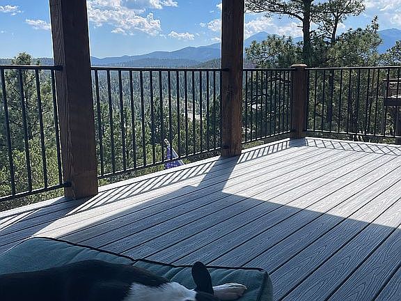 Amazing views of Sierra Blanca from this three story home. Fully renovated in 2021 with rebuilt composite decking, plank flooring, three tile walk in showers with glass doors. Two living rooms each have large stone wood burning fireplaces.